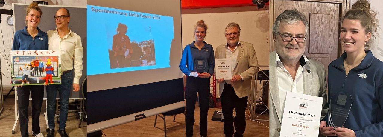Am Dienstag, den 06. Februar 2024 abends fand ein feierlicher Rahmen im Clubheim des Düsseldorfer SV 04 Lierenfeld e. V. statt. Delia Gaede wurde zur „Gehörlosen Sportlerin des Jahres 2023 gewählt und der Vize-Präsident des Gehörlosen Sportverbandes NRW, Steffen Rosewig, überreichte der völlig überraschten Leichtathletin Delia Gaede den Pokal und die Urkunde im Vereinsheim des Düsseldorfer SV 04. Delia Gaede gewann im Sommer 2023 bei den Europameisterschaften im polnischen Stettin den Titel über 200m und holte Silber über 100m.