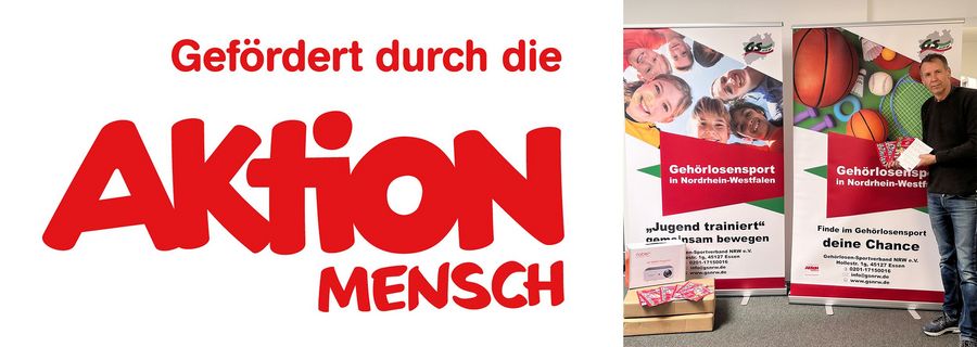 Mit Hilfe der großzügigen Unterstützung der Aktion Mensch konnten wir einige wichtige Dinge anschaffen, die für die Öffentlichkeitsarbeit des Gehörlosen-Sports sehr wichtig sind, wie z. B.: neue Roll-UP, Laptop, Beamer und Prospekte.