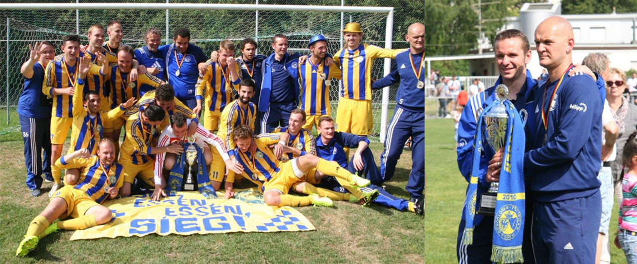 Nach dem Schlusspfiff vom Unparteiischen Ricardo Scheuerer, der das Endspiel in guter Verfassung leitete, folgte die Siegerehrung, welche Jens Becker, Technischer Leiter Herren, mit Unterstützung vom Verbandsfußballwart Dieter Wickert vornahm. Ricardo Scheuerer (SR), Marvin Becker (schwerhöriger SRA) und Sebastian Wiesner (hörender SRA) bekamen die Erinnerungsmedaillen. Nach der Überreichung der Silbermedaillen an Vize-Meister GSV Augsburg durften die Essener sehr stolz auf die Goldmedaillen sein. Zum Schluss nahm der Essener Kapitän Boris Bovermann den neuen Wanderpokal in die Hände und reckte ihn hoch, wo dann die Essener Spieler und deren Fans um den Pokal unter tollem Jubel herum tanzten. Die Sparte Fußball des DGS bedankt sich beim GTSV Frankfurt für die gute Ausrichtung und Organisation des Finales.