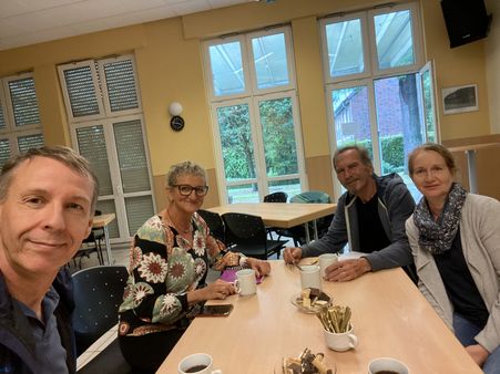 Die Tischaufstellung ist geeignet für den Saal gemäß der aktuellen Corona-Regeln. Auch das benötigte Equipment wie Beamer-, Bühne- und Hochtischaufstellung wurde besprochen und das zu bestellende Essen. Während einer Kaffeepause konnten wir uns sehr angenehm unterhalten. Jetzt können wir Weiteres veranlassen und freuen uns auf unser gemeinsames Treffen beim ordentlichen Verbandstag im November in Münster.