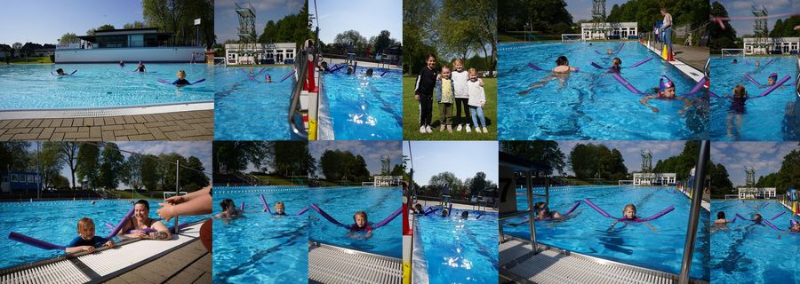 Vom 13.5. bis 18.6.2023 fand ein schwimm Schnupperkurs, organisiert vom GSNRW, statt. Mit ca 4-6 Kindern war der Kurs gut besucht und die Kinder hatten jede Menge Spaß. Nina, die Kursleiterin, hat jede Menge wichtige Inhalte vermittelt, sodass die Kinder schritt für Schritt mehr zum eigenständigen schwimmen herangeführt wurden. Zum Dank bekam sie einen Gebärdennamen von den Kindern. Die Eltern durften beim Kurs dabei sein und sogar teilweise mit ins Wasser. Ein im gesamten wunderbarer Kurs für Kinder und Eltern!