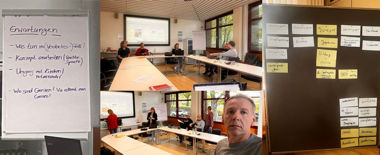 Das vorher geführte Erst-Gespräch fand mit den Verantwortlichen des Verbandes statt. Referentin ist Frau Eigenrauch (LSB NRW). Das Seminar in Präsenz war der erste Teil „zur Sensibilisierung" und daraus erfolgte die Risiko-Analyse. Gegen Mittag ging es zum Essen bei der Sportschule Duisburg.