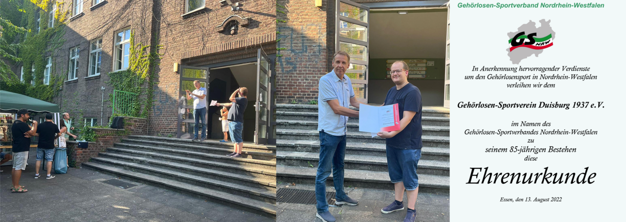 Am Samstag, 13. August 2022 fand ein Sommerfest in Duisburg statt, zu dem der GSV Duisburg den 85. Geburtstag im Clubheim feierte. Mehr als 50 Besuchern kamen zum Sommerfest. Gegen 17 Uhr startete der 2. Vorsitzende, Sebastian Herrmann mit kurze Rede den offiziellen Teil der Jubiläumsfeier. Vertreter des GSNRW, Ralf Geerk hatte eine kleine Rede über 85-jährige GSV Duisburg vorbereitet: Vor 85 Jahre gründete zuerst eine Gehörlosenabteilung Duisburg unter dem Hörende-Verein. Im Jahr 1970 war es endlich der selbstständige Gehörlosen-Sportverein Duisburg e.V. Gestartet wurde im Sportverein mit folgenden Angeboten: Badminton, Schach, Sportschiessen, Tennis, Tischtennis, Dart, Volleyball … Die Abteilung Fußball feiert das bisherige 42-jähriges Abteilungsbestehen.