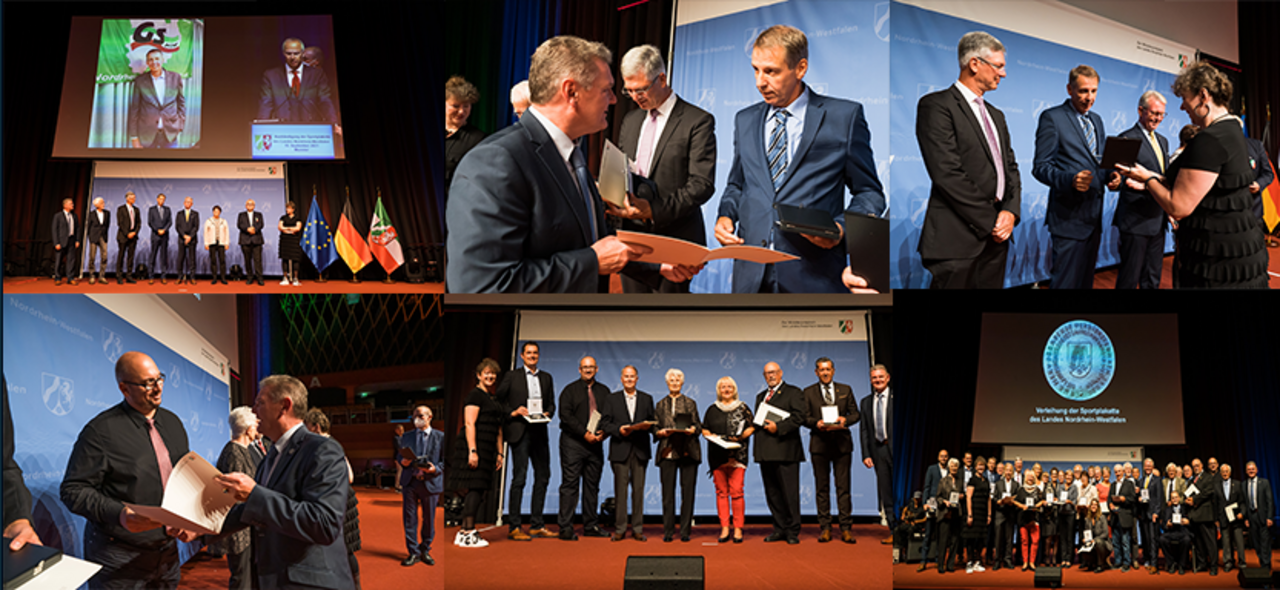 Die Staatsekretärin für Sport und Ehrenamt, Andrea Milz, hat in Vertretung von Ministerpräsident Armin Laschet die Sportplakette des Landes Nordrhein-Westfalen verliehen. Bei einer Festveranstaltung in Münster würdigen die Staatssekretärin, Präsidenten des Landessportbundes NRW die Verdienste von 32 Bürgerinnen und Bürgern engagiert. Ralf Geerk (GSV Recklinghausen/GSNRW) und Stefan Friedrich (GTSV Essen) haben sich insbesondere Weise für den Gehörlosensport in NRW engagiert und wurden mit der Sportplakette des Landes NRW ausgezeichnet.